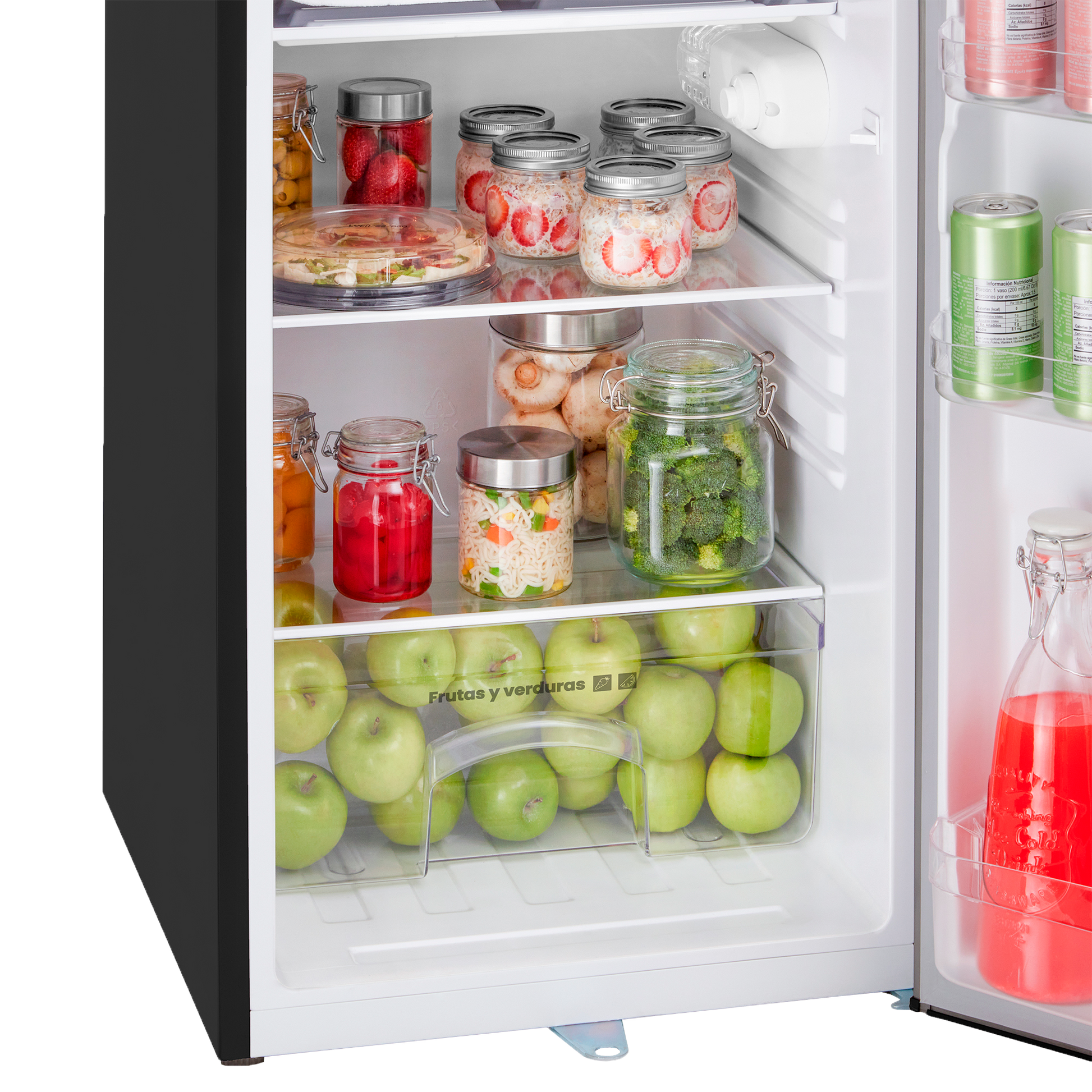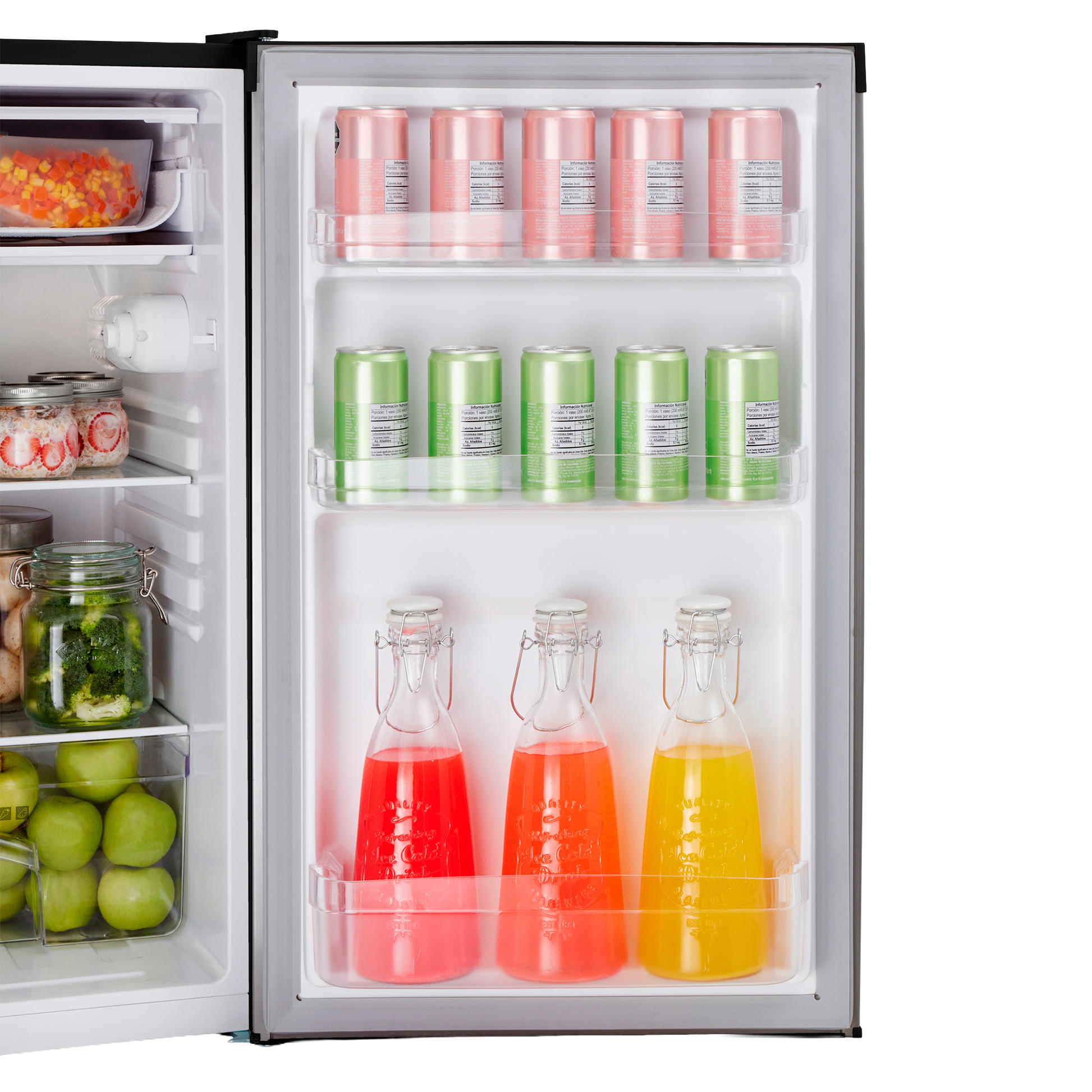 Si almacenarás bebidas grandes o alimentos, elige uno con bandejas ajustables.