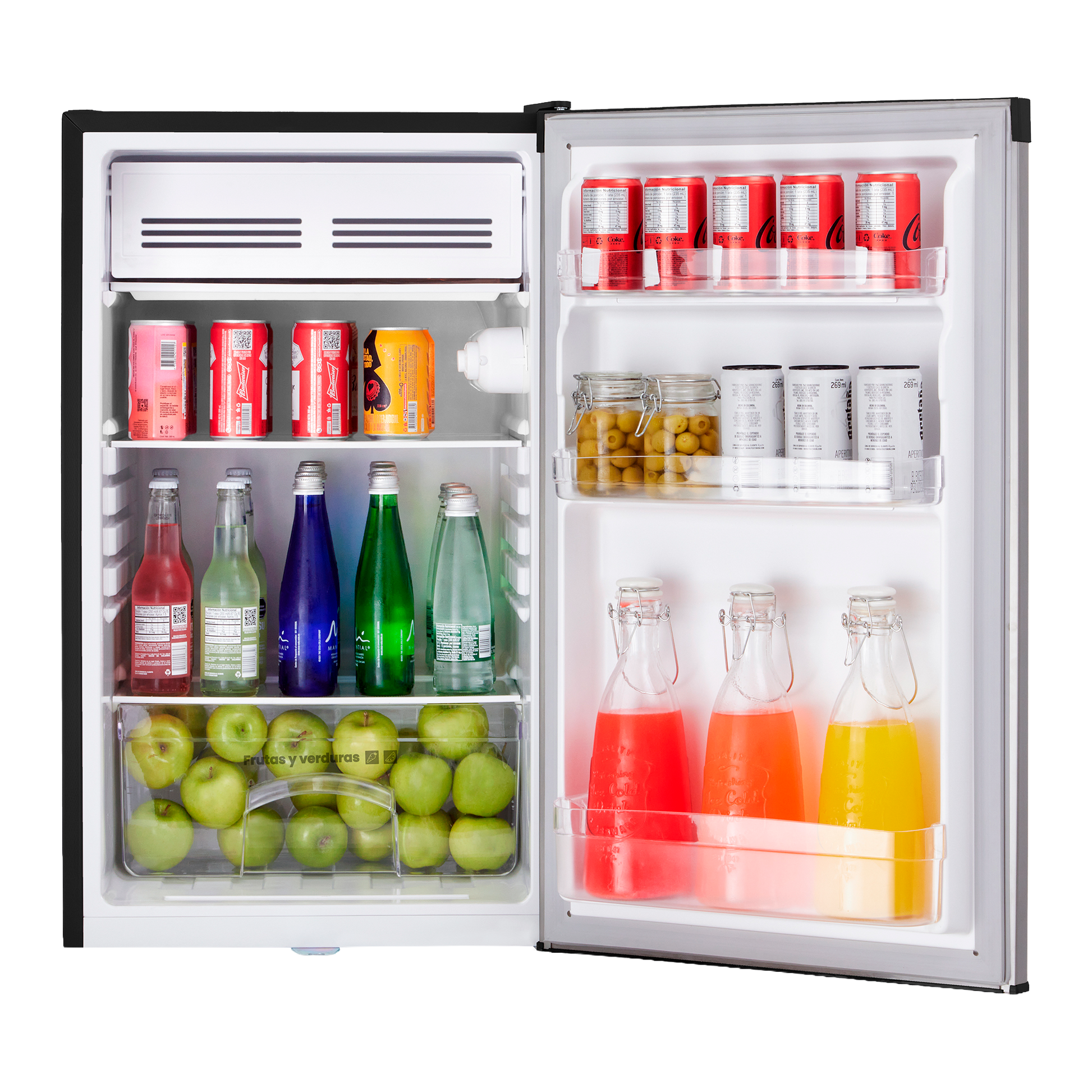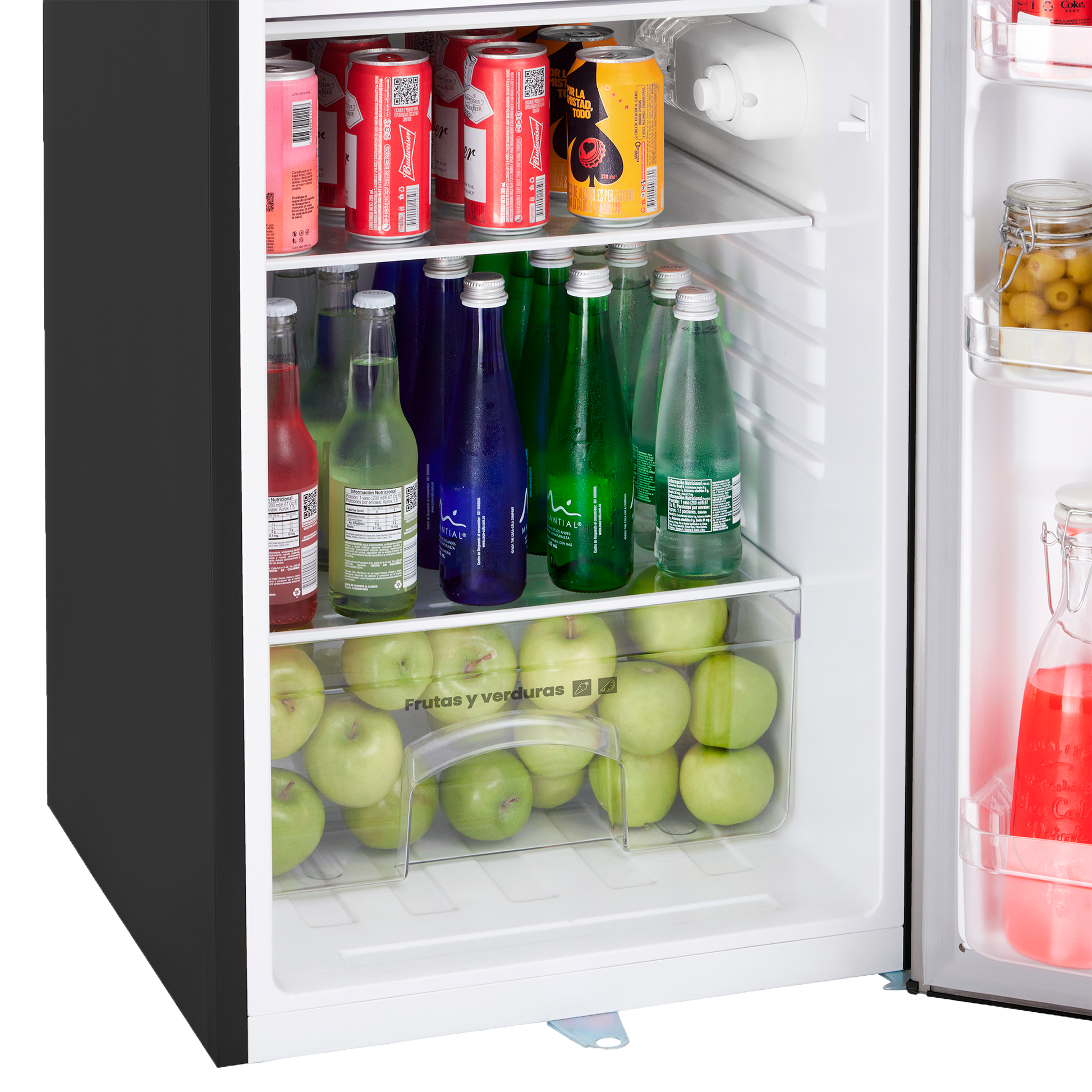 Enfría correctamente bebidas, snacks y productos esenciales, pero no sustituye la capacidad y potencia de una nevera de tamaño completo.