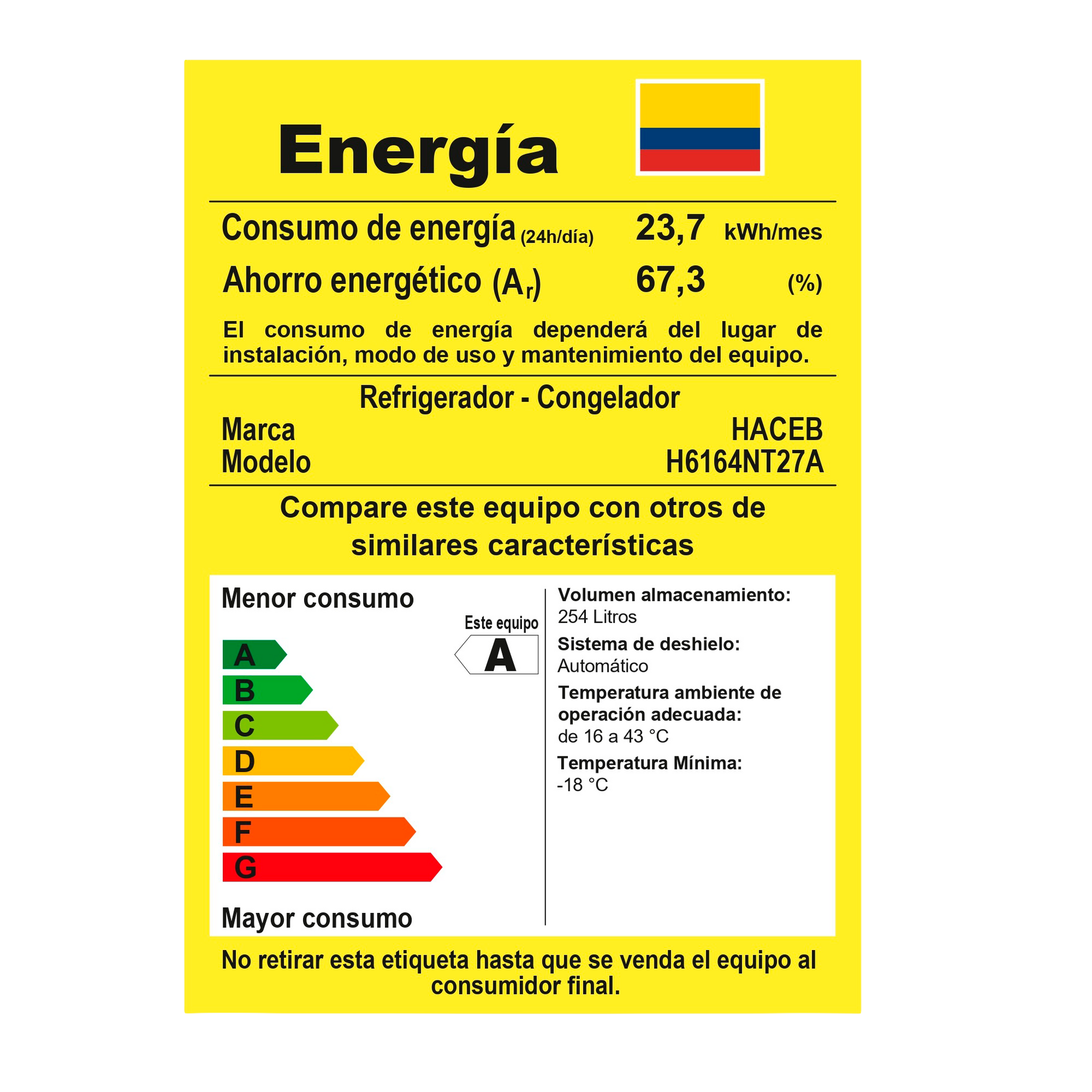 NEVERA NO FROST 271L INVERT HACEB 9003544